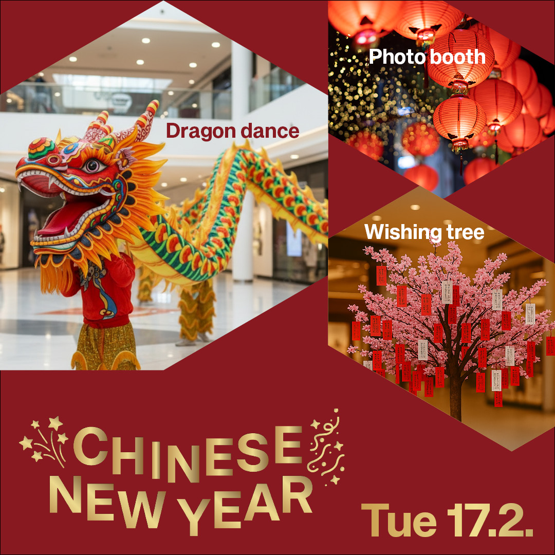 Welcome to experience the traditional Dragon Dance, symbolising good fortune, prosperity, and the cleansing energy of the New Year. The dancers guide the dragon through the corridors of Iso Omena, creating a vibrant and dynamic performance that captivates visitors of all ages!