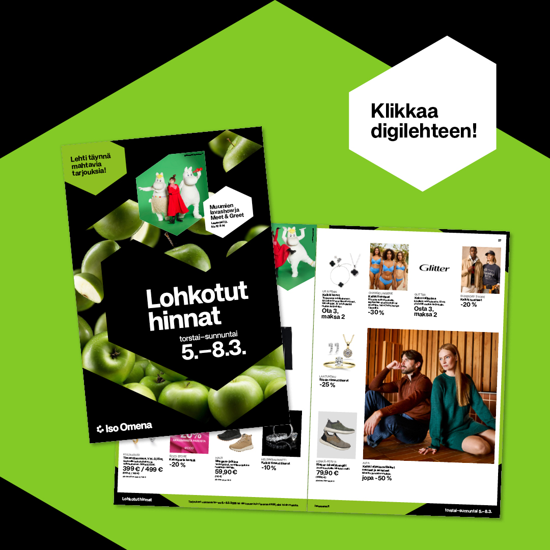 Lohkotuilla hinnoilla torstaista sunnuntaihin 5.–8.3. nautitaan kevään upeista uutuuksista sekä huikeista tarjouksista! Kokosimme tarjousten parhaat palat digilehteen, jotta selailun voi aloittaa kätevästi kotisohvalta.